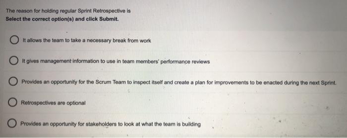 Solved The Reason For Holding Regular Sprint Retrospective Chegg Com